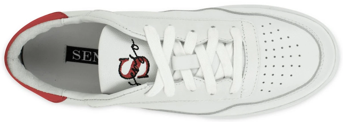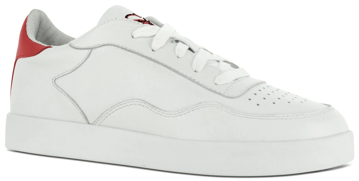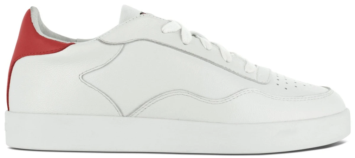 Cherry calf leather low-top sneakers, featuring a round toe, contrasting heel counter and flat rubber sole.