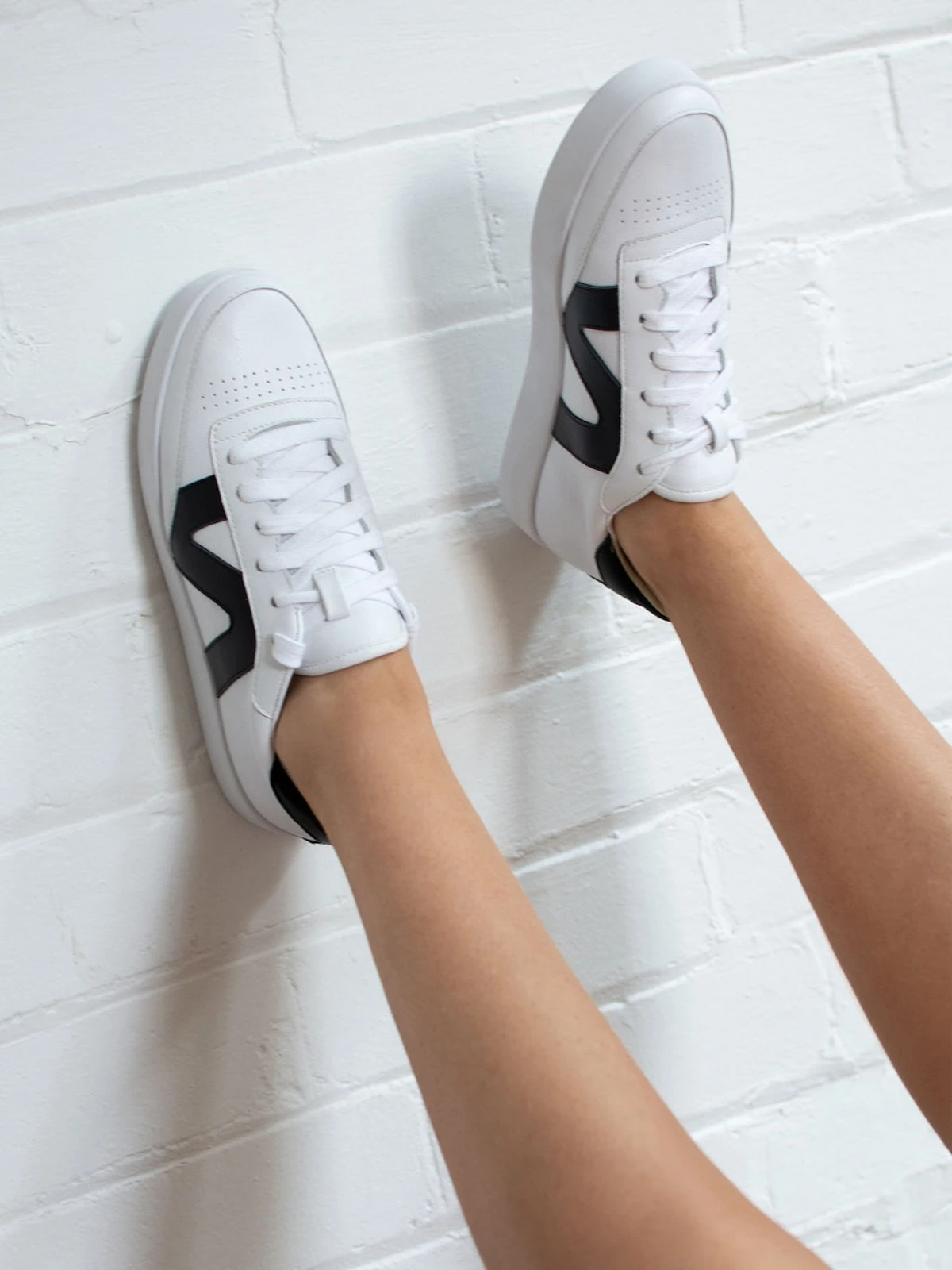 Ebony calf leather low-top sneakers, featuring a round toe, contrast detailing and flat rubber sole.