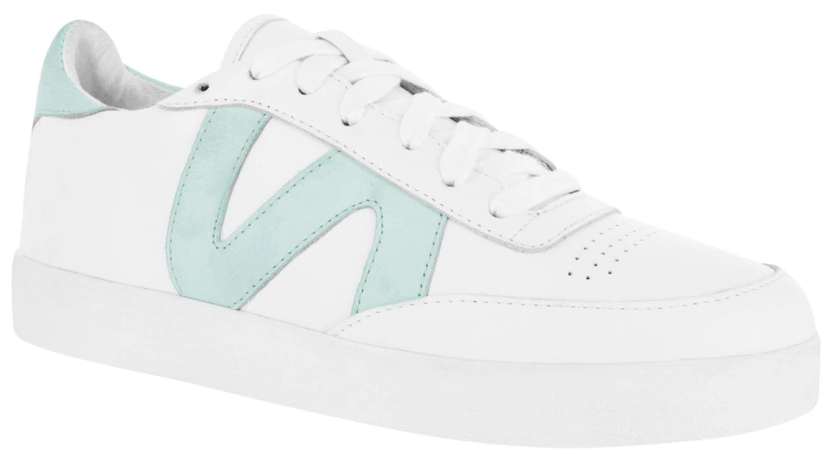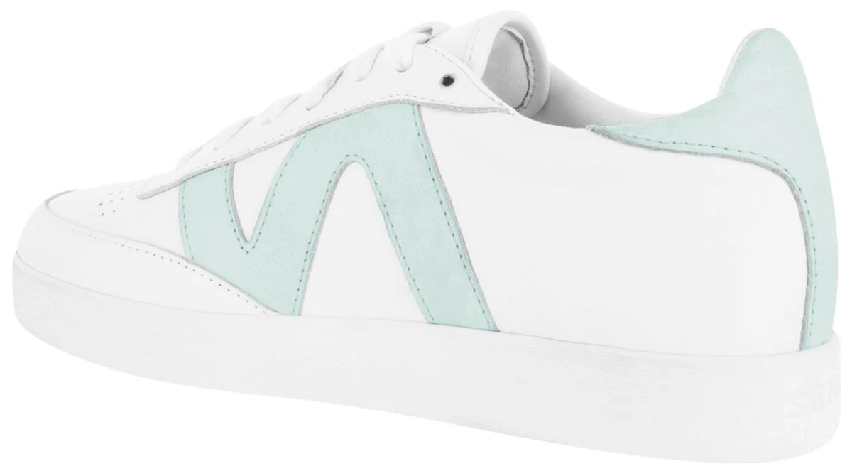 Duck egg calf leather low-top sneakers, featuring a round toe, contrast detailing and flat rubber sole.