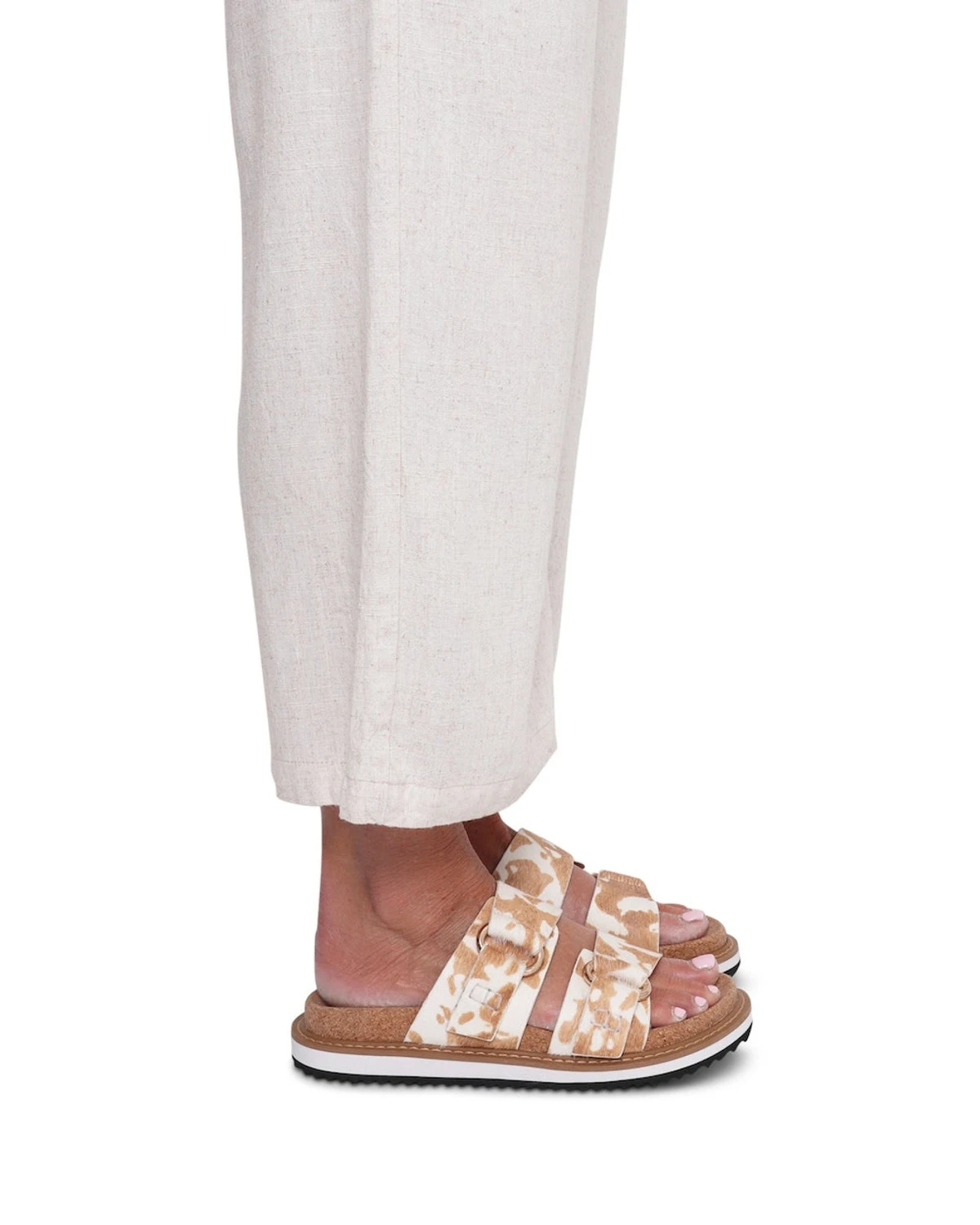 Allow us to introduce our newest addition, the Bambi sandal, designed with your comfort in mind. This charming design features a soft, rounded toe and two straps that provide both unmatched comfort and style. The Bambi sandal is also crafted with a cork sole, ensuring a comfortable experience even on hot summer days. Pair it effortlessly with a maxi dress or linen trousers to create the perfect summer outfit.