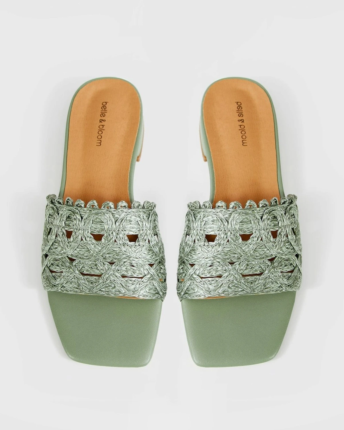 Patterned raffia adds organic texture to the Cant Quit You Slide. Featuring a comfortable padded sole and a genuine leather covered heel, this flat can add a bit of elegance to your every day Spring wardrobe.