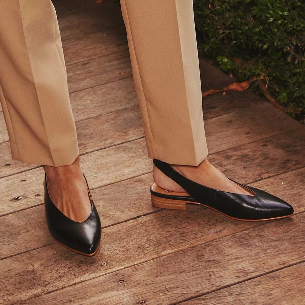 There’s nothing like a pair of slingback shoes to style out those transitional days when the weather hasn’t quite decided which way to go. Set on a slight heel, the EMIS easily encircles the ankle with hidden elastic for a secure fit. A pointed toe completes the classic profile, constructed from supple cashmere leather.