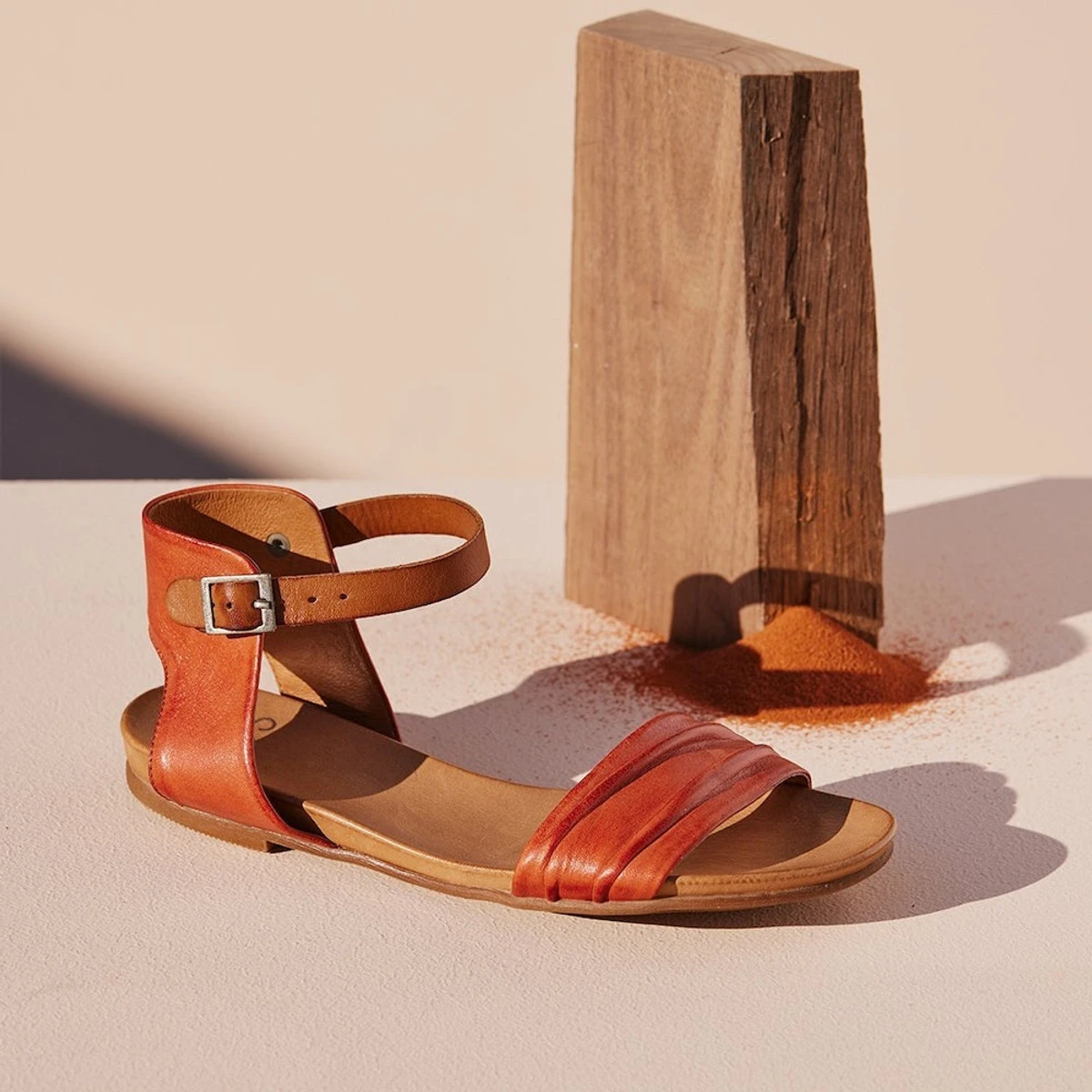 The Larni has been masterfully crafted by Portuguese shoemakers, and it sports rich colours and a bold look. This flat sandal features a durable leather strap to keep it from slipping while you walk, and the soft footbed of exquisite calf leather ensures your comfort all day long.