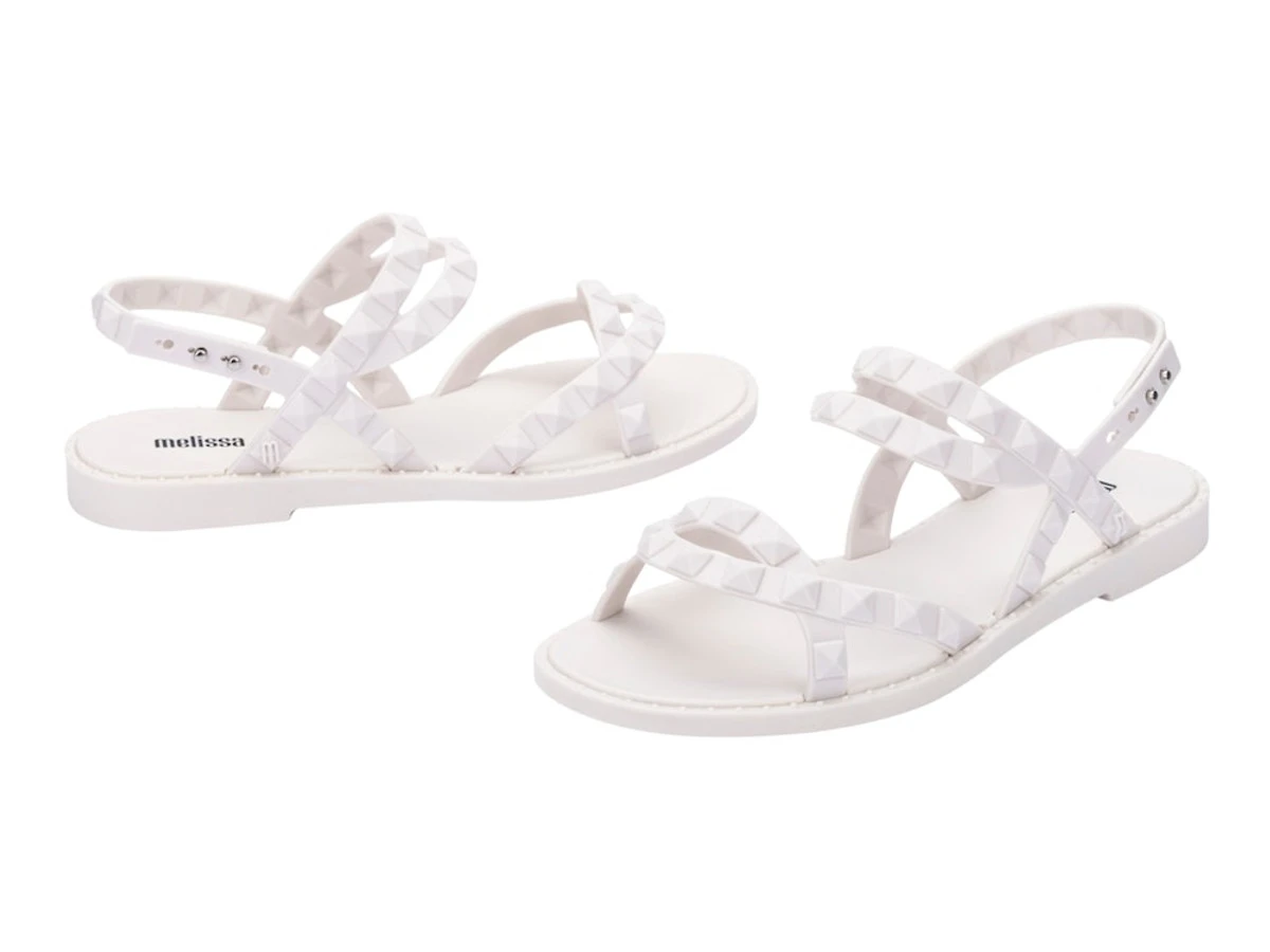 Tell me about it, stud. This season is getting off on a new foot, with Melissa providing high-fashion trends like studs, all in sustainable jelly. The Melissa Lucy sandal has it all – lightweight practicality with fashionable studded straps that zig-zag aver the toes and around the heel.