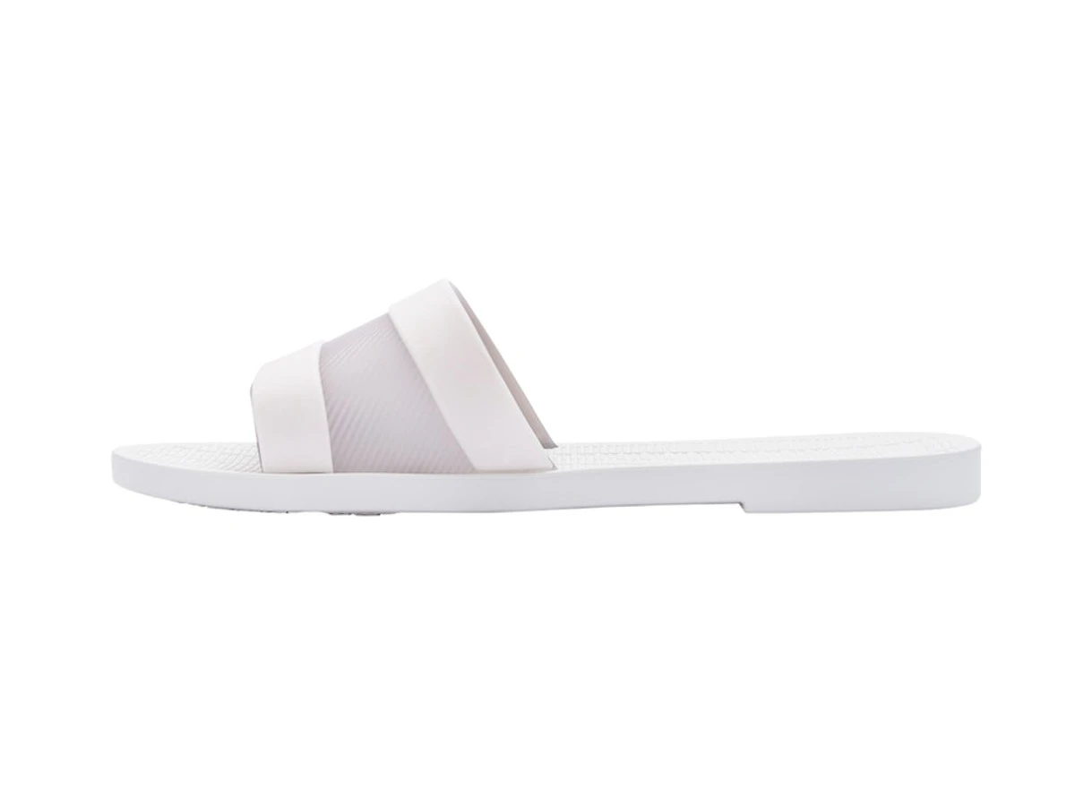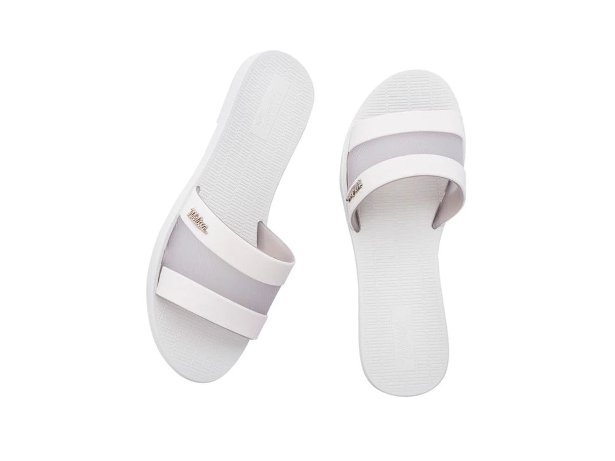 Don’t call this a slide, it’s the Melissa Hollywood slide, darling! With a sole of embossed, ultra-comfy foam and a Melflex upper, there’s a metallic Melissa logo to flash in the Summer sun like a total starlet. The upper plays with transparency, offering a slimline, sophisticated slide for home and holiday.