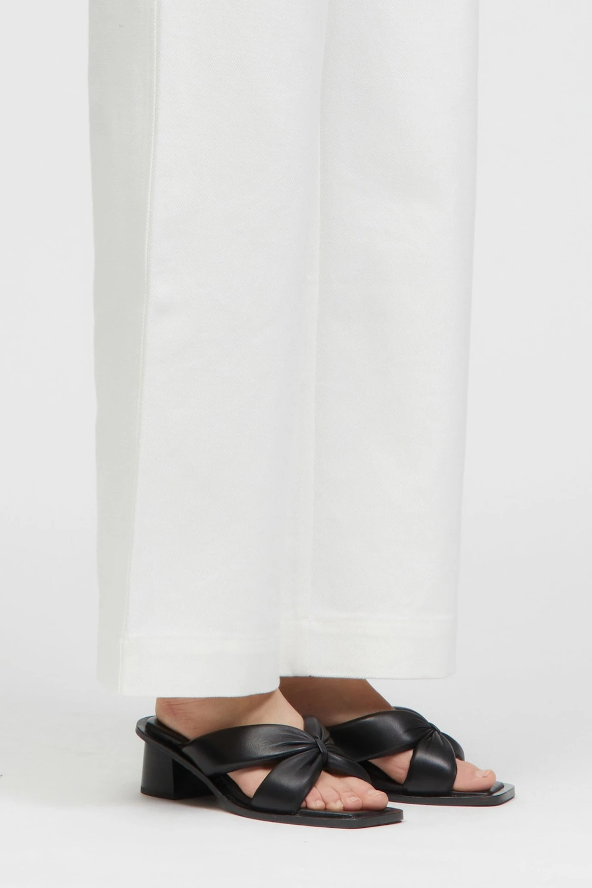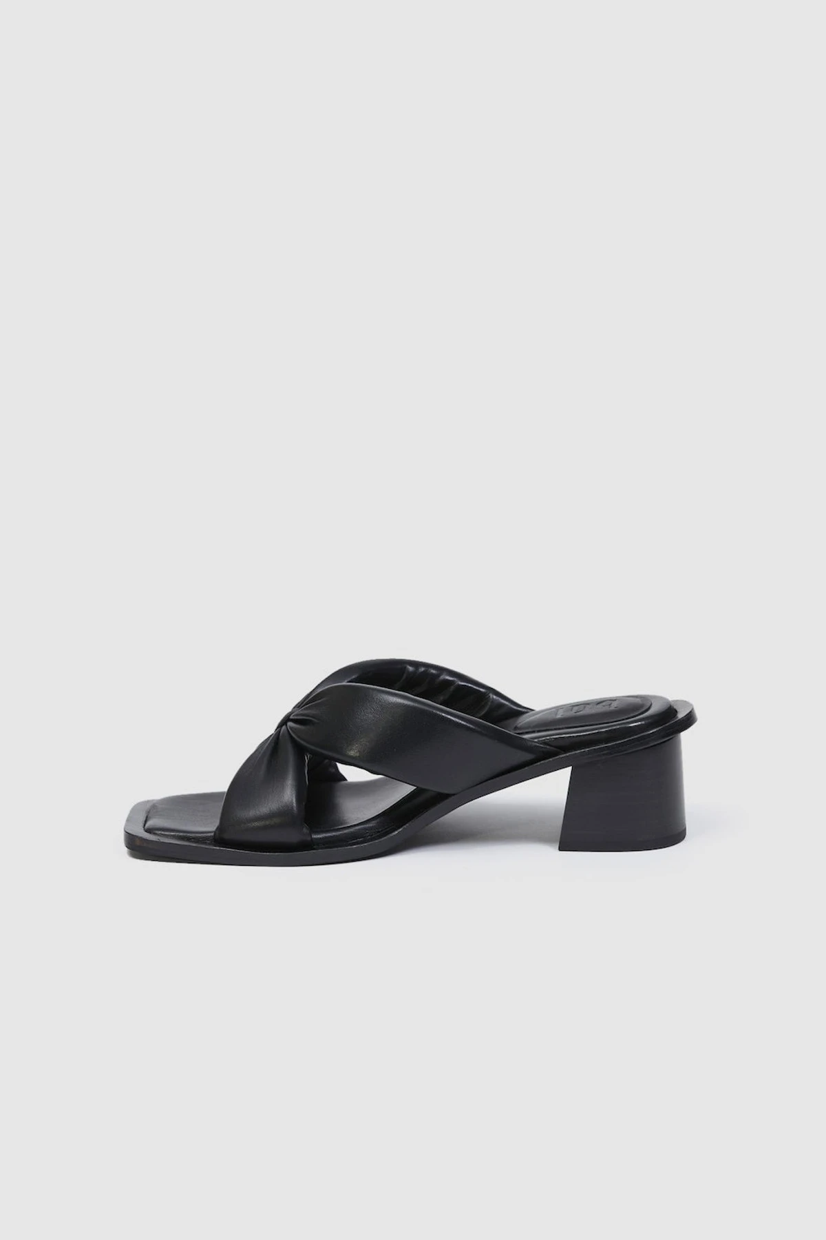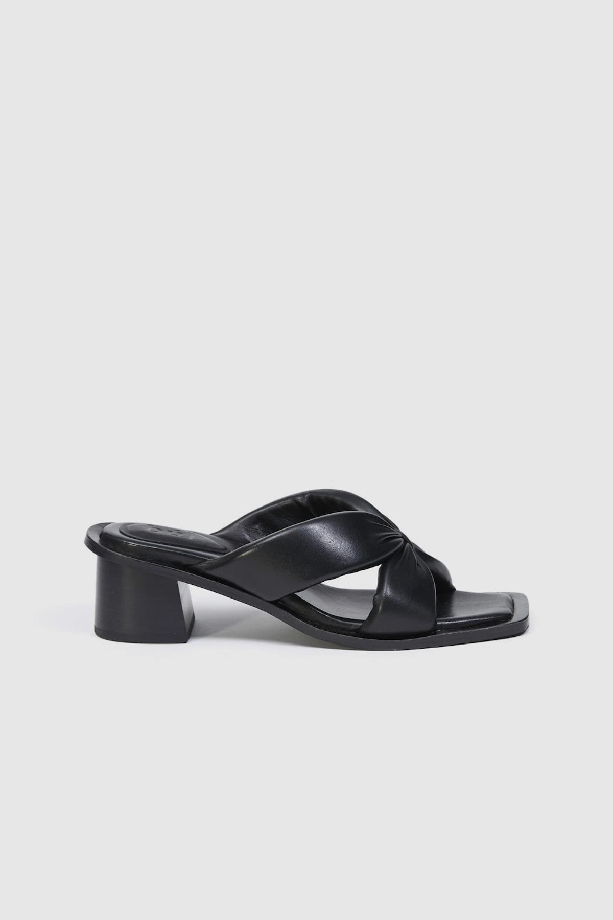 The Roca Midi is a square open-toed midi heel with ultra-comfy padded cross-over leather straps, finished with a square wooden heel.