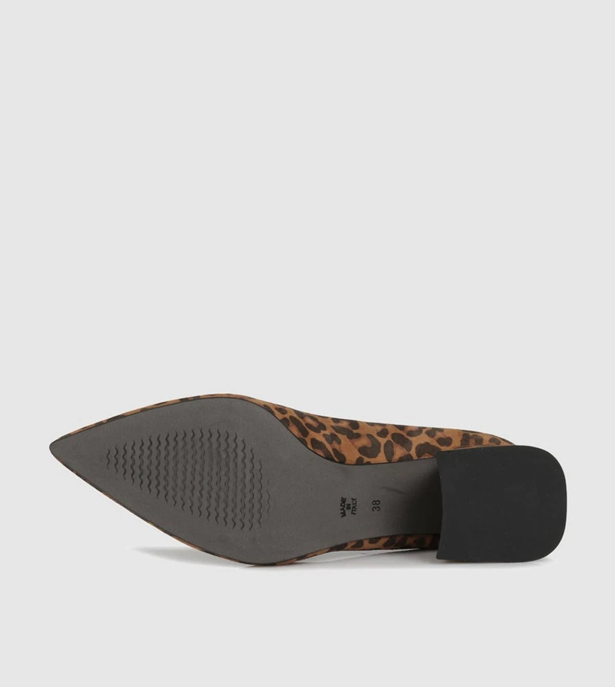 Sempre Di have been creating beautiful, contemporary footwear for Australian women for over twenty years. Crafted in Italy, The Sharon Court Shoe provides that extra flair in your wardrobe through the leopard print leather and pointed toe design. With the additional features of a high V cut, it makes as the primary focal point in any outfit ensemble.