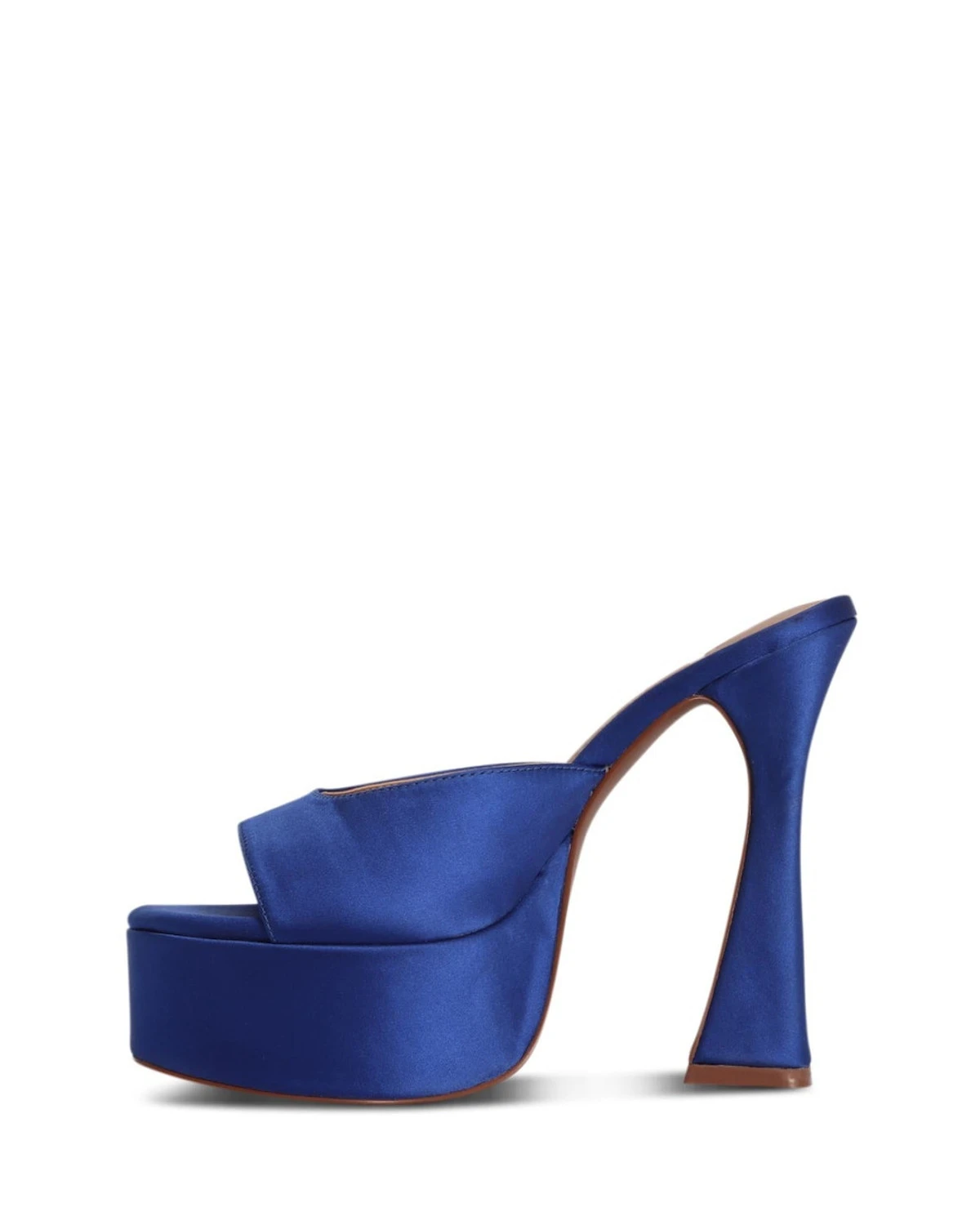 Reach for new heights this season, with our latest satin Vegas heel by Skin Footwear. Designed to stand out, the Vegas heel features an extreme platform sole, a flared heel, contoured upper and peep toe silhouette. Let the heels do the talking, and pair with a mini dress for the ultimate leg-lengthening effect.